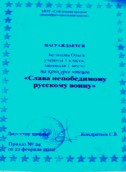 25 февраля в школе среди учащихся начальных классов прошёл конкурс чтецов "Слава непобедимому русскому воину". Из нашего класса участвовали два ученика - Белякова Ольга и Юдин Дмитрий. Белякова Ольга заняла 1 место, Юдин Дмитрий - 2 место. Молодцы, ребята!